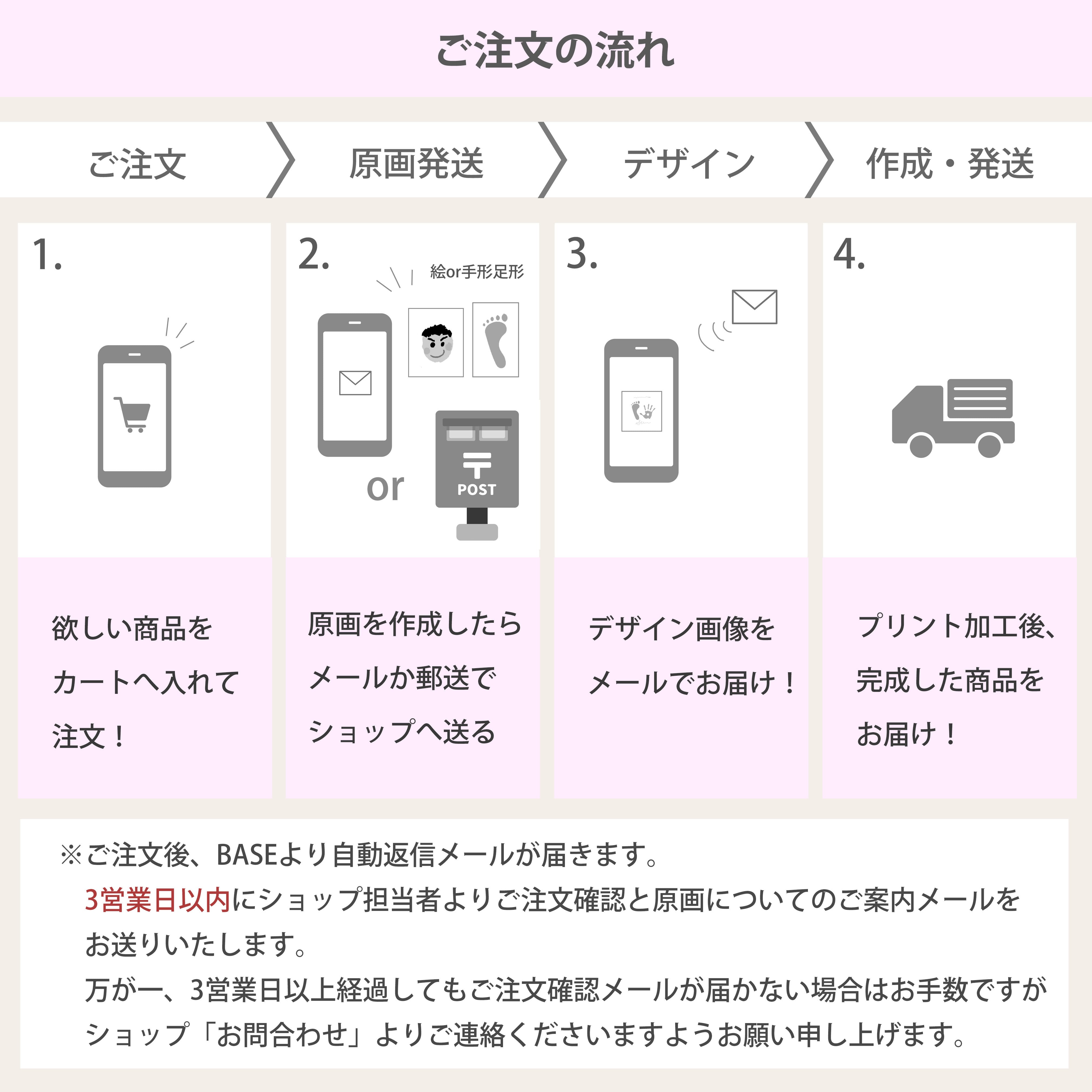 手形足形は当ショップで色変更いたしますので、ご自宅で取る際の手形足形のインクや絵の具は何色をお使いいただいても構いません。