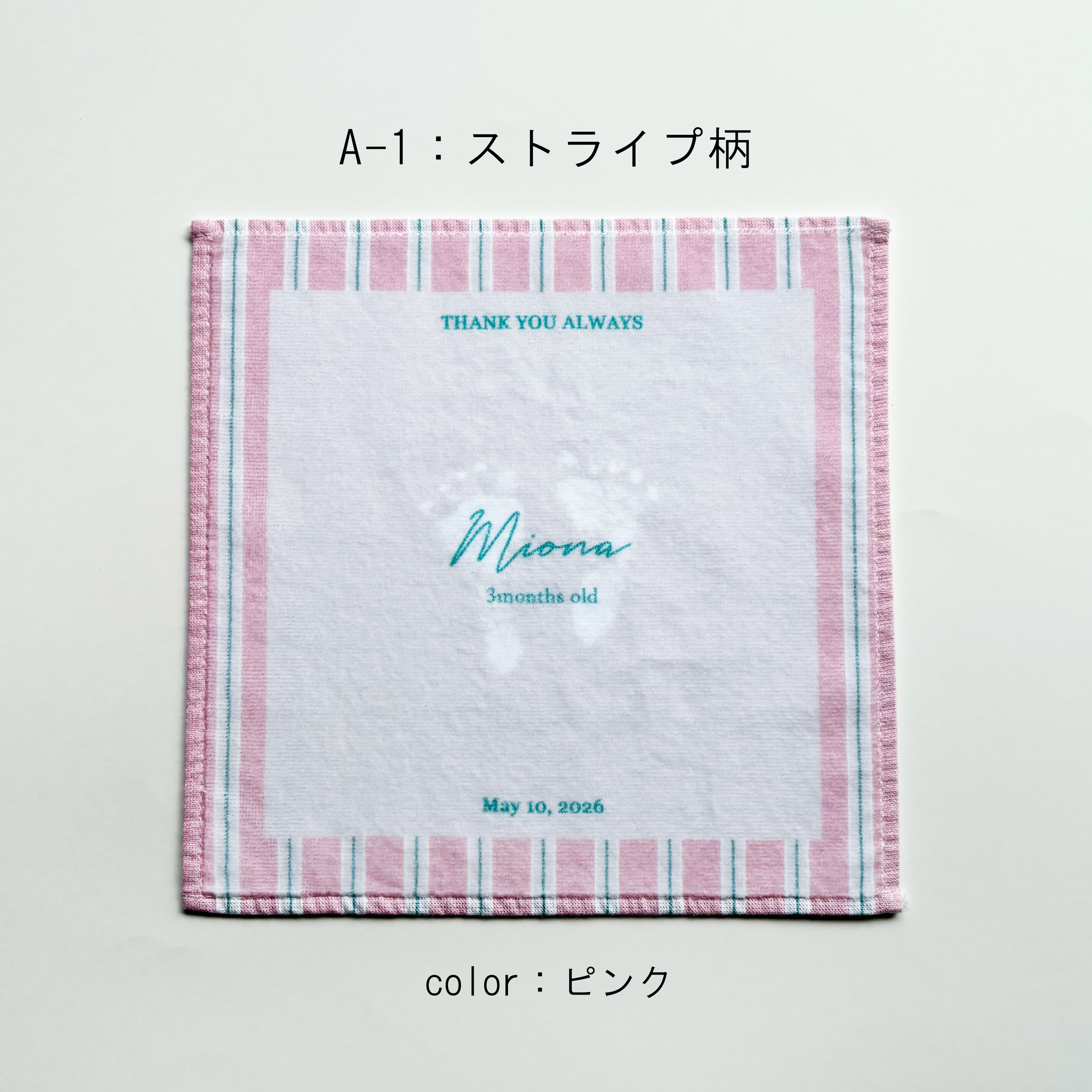 今しか残せない貴重な手形足形を、原寸大で思い出とともに大切に残せるハンカチです。