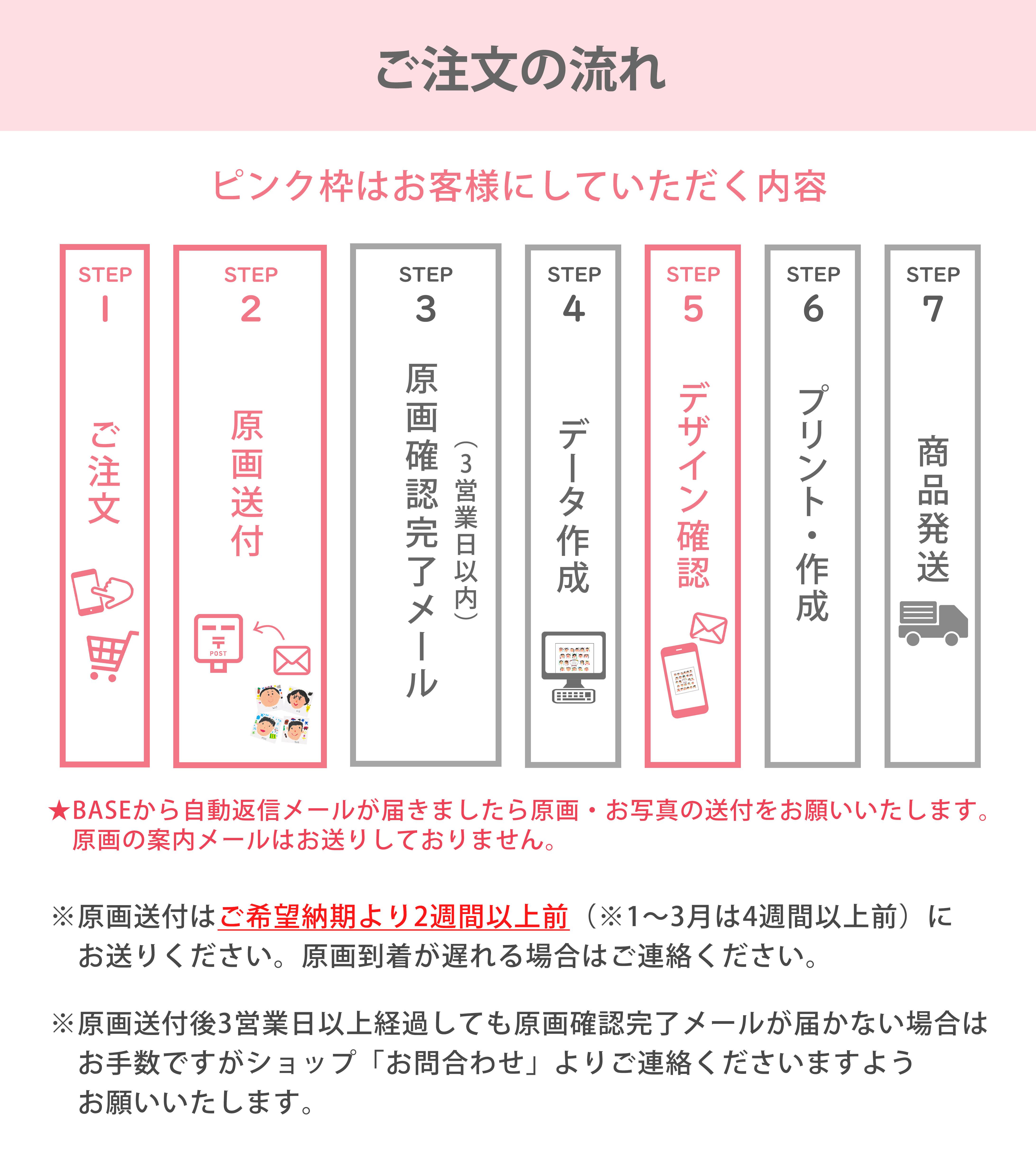 (夏季休業・冬季休業期間は1週間ほど、1~3月の繁忙期は4~6週間ほど余分にお時間を頂戴いたしますのでお急ぎの方はご注文前にお問合わせください)