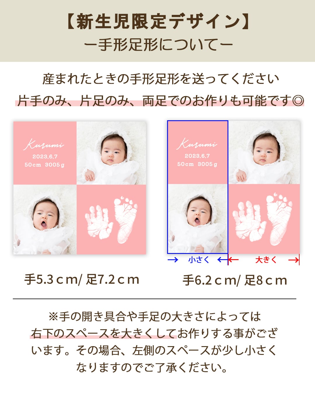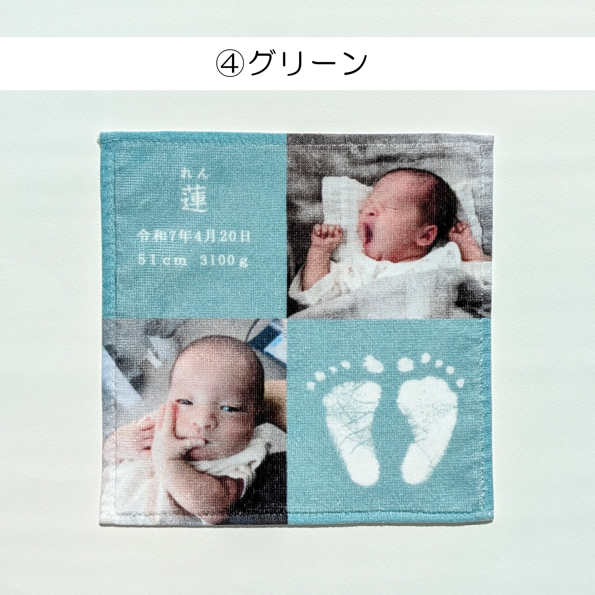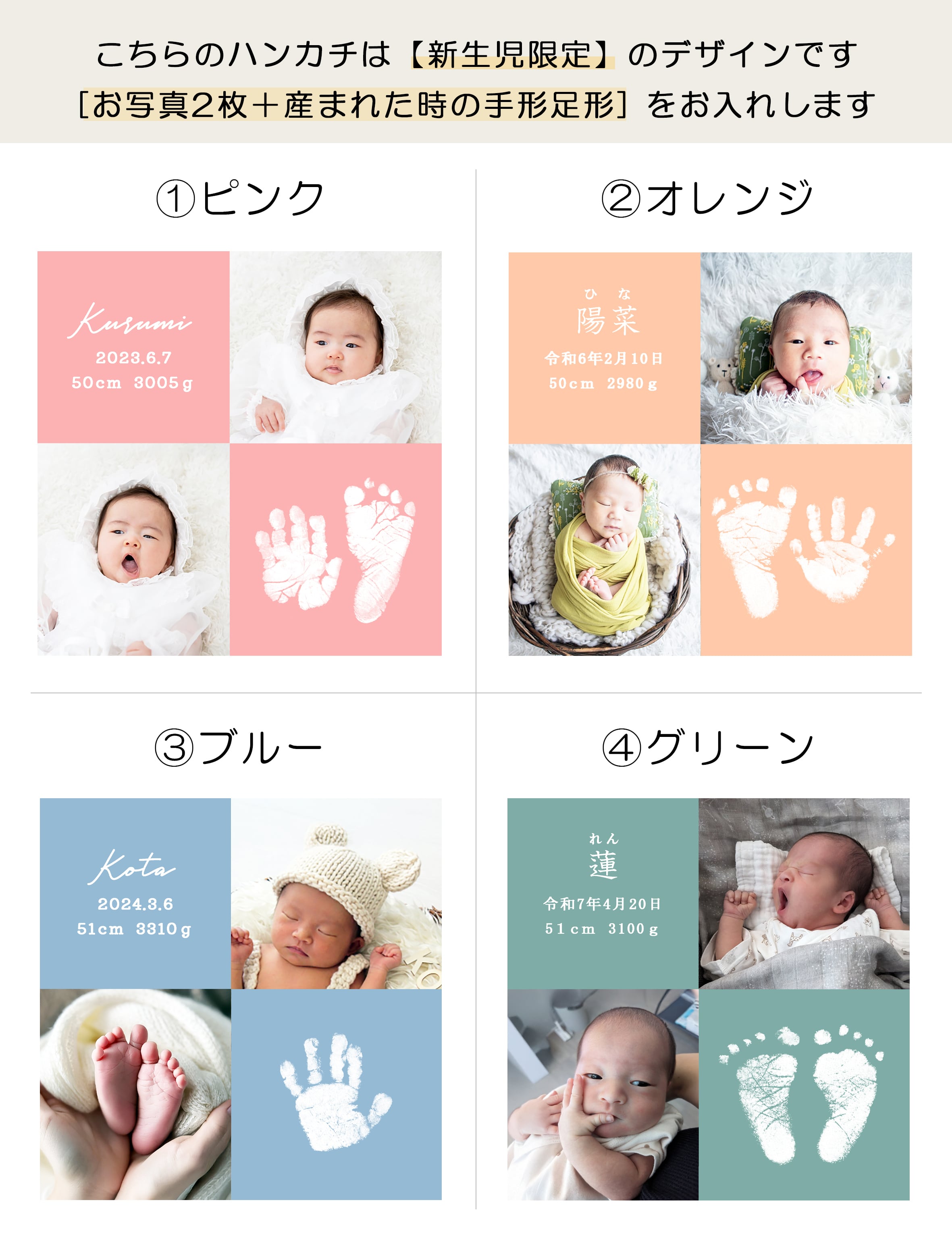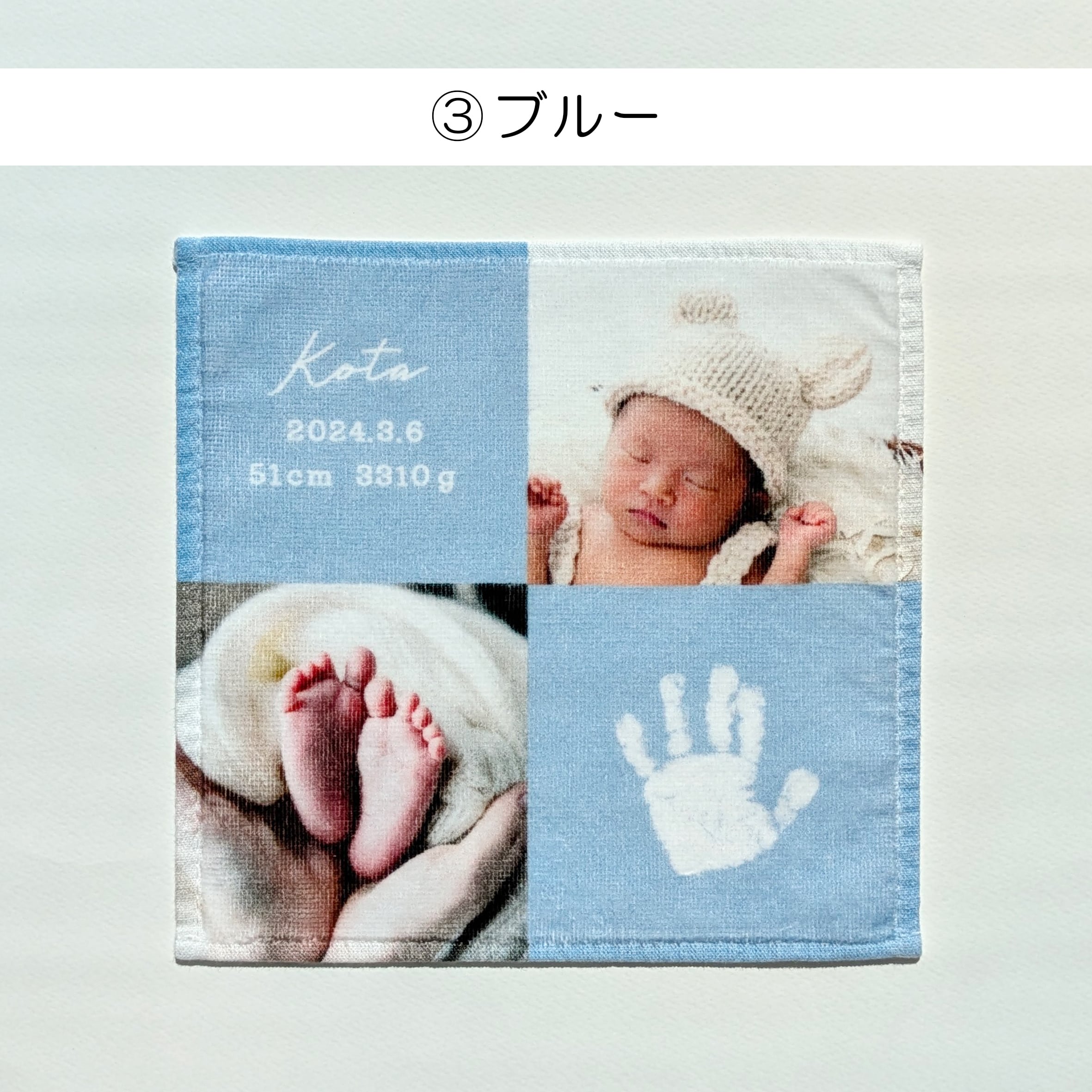 こちらのページは【新生児限定】フォトプリントハンカチ(手形足形入り)のご注文専用ページです。特別な瞬間を大切に残すアイテムとして、ぜひご利用ください。 ----------------------- 新生児の可愛いお写真と手形と足形をプリントした特別なハンカチが登場しました! お名前や生年月日、そして産まれたときの身長体重も一緒にプリントできるので、思い出としてずっと手元に残ります。 【ギフトにも最適】 おじいちゃんやおばあちゃんへの内祝いにもぴったりです!感謝の気持ちを込めて、特別な贈り物としてご利用いただけます。 サイズは[20×20cm]です。 *より大きなサイズへの変更は対応しておりません。 大切な新生児の成長の瞬間をハンカチに残すことで、一生の宝物を手に入れることができます。赤ちゃんの成長を感じられるアイテムとして、心温まる思い出を一緒に作りましょう! ご質問やご相談はお気軽にお問合せください。詳しい情報をお届けしますので、ぜひお気軽にご連絡ください。 【納期について】 原画到着後、1週間~10日で発送いたします。お時間に余裕を持ってご注文ください。 【配送について】 こちらの商品は送料無料です。クリックポストにてお送りいたします(ポスト投函・日時指定不可)。お急ぎの方は、宅配便のオプション(+550円)もご利用いただけます。 大切な思い出をこのハンカチに込めて、特別なギフトを贈りましょう!