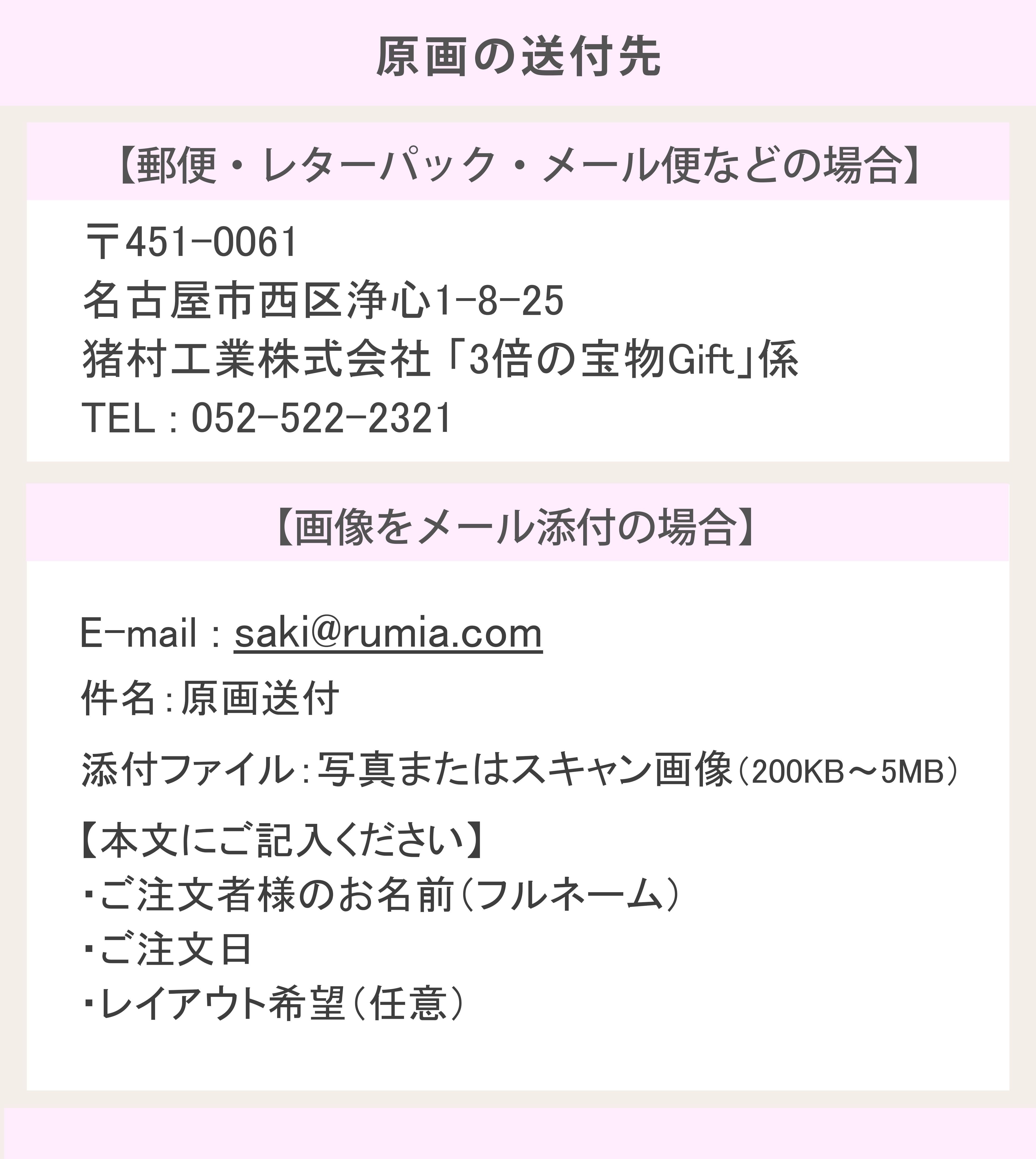 原画の送付はご注文後、1週間以内にお願いいたします。(郵送またはメール)