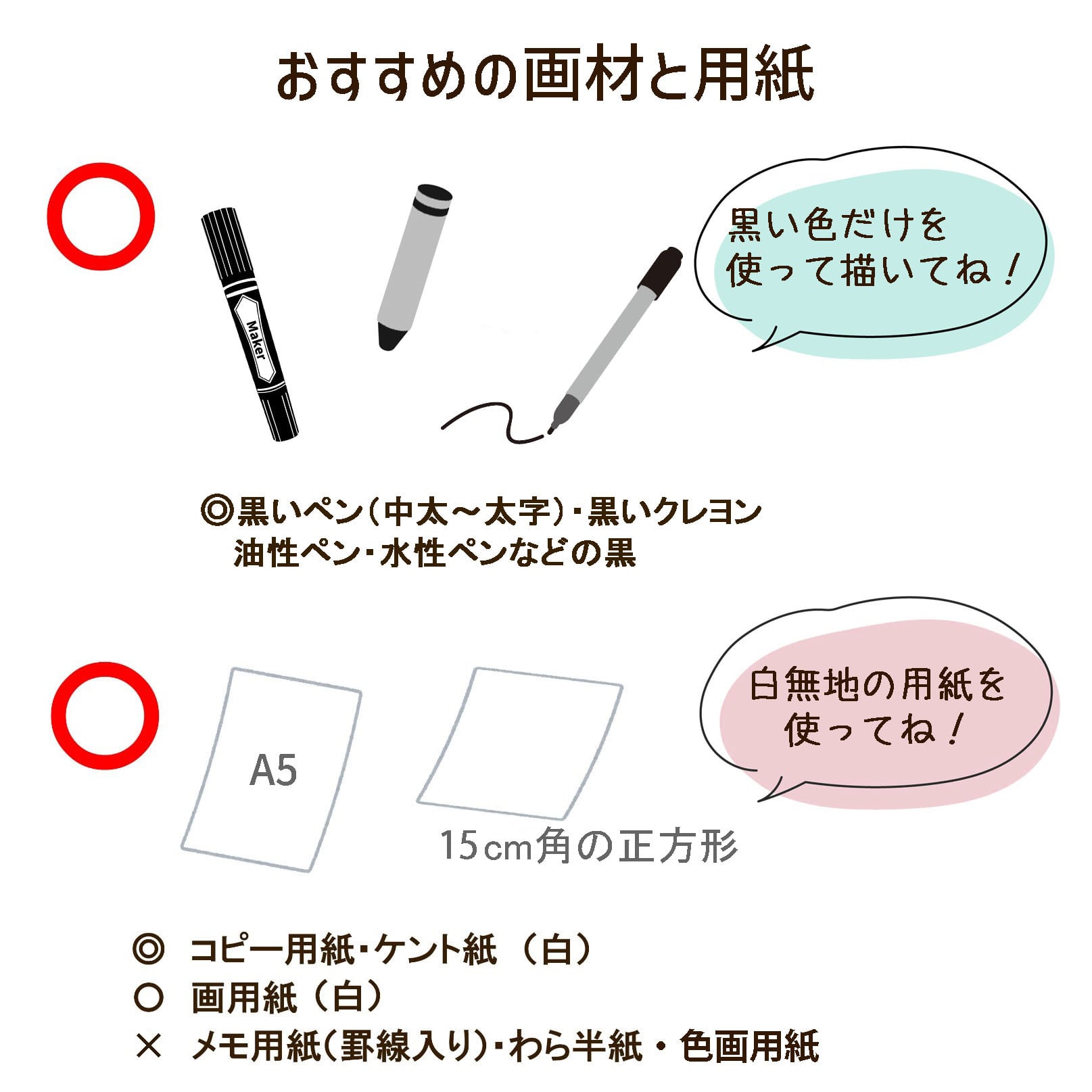 持ち込みデザインの場合もお選びいただいたカラーへ変更いたしますので、色付きのイラストなどは避けて黒1色で作成してください。