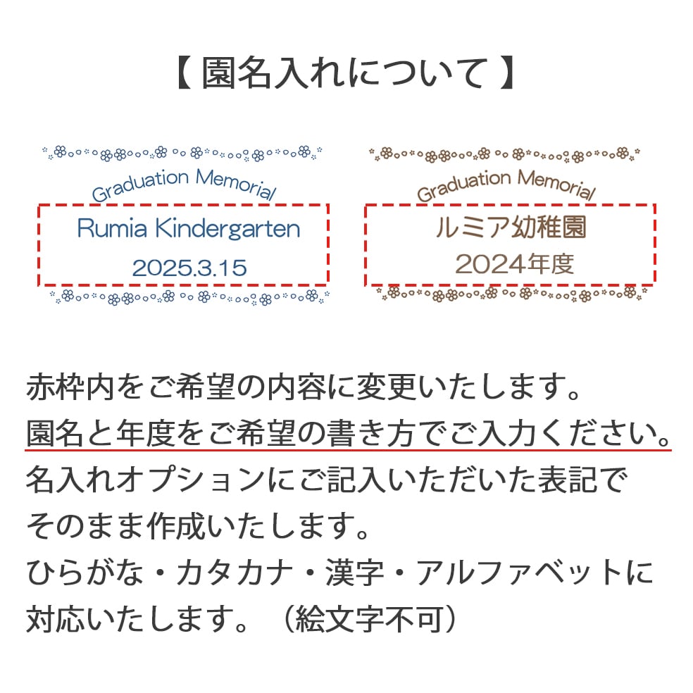 卒園年度や園名など名入れも可能です。(サンプル画像参照)